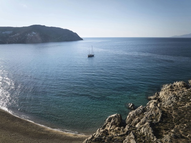Отправление из бухты Орнос с обзором южного побережья Миконоса и его знаменитых пляжей: Псару, Платис Ялос, Паранга, Парадайз, Супер Парадайз, Агриари и Элия.