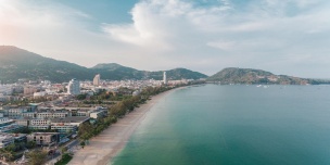 - Южный пляж или на английский лад Саус Бич занимает территорию длиной около пяти километров до горы Лак. В тишине пляжа расположились отели для умиротворенного пляжного отдыха, инфраструктура Южного пляжа не так развита как центральная часть курорта, около основных отелей находится курортная деревушка с кафе и ресторанами, массажные салоны, есть обменные пункты. Песок на пляжах крупный и золотистый, вблизи от берега растут деревья и пляжная полоса не очень широкая. Рядом располагается шумная пристань с катерами и лодками. На городском пляже Као Лак можно арендовать зонтики и лежаки.