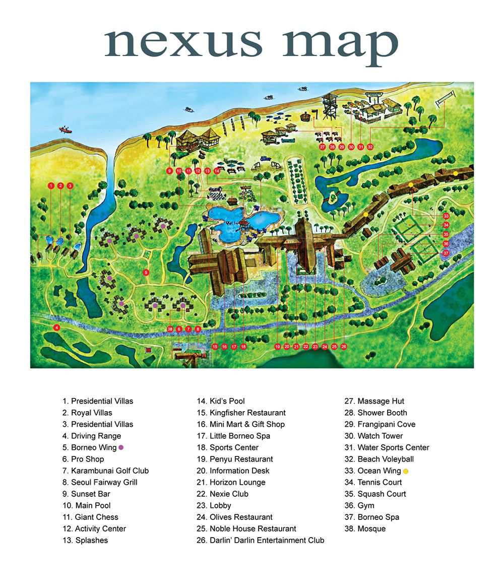 Nexus Resort & Spa Karambunai расположен в уединённом месте на побережье Карамбунаи, рядом с гольф-полем, в 30 минутах езды от Kota Kinabalu. Курорт занимает просторную зелёную территорию площадью 1350 га.