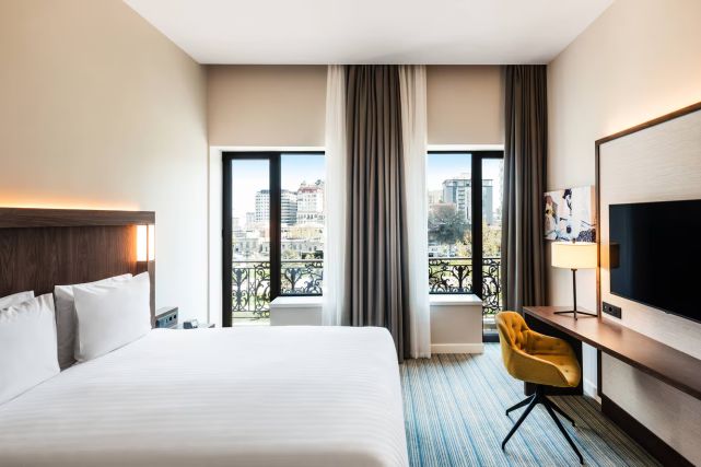 Courtyard by Marriott Baku Hotel — стильный и современный 4-звёздочный отель, расположенный в центре Баку. Этот отель подходит как для деловых поездок, так и для отдыха, предлагая гостям удобное расположение и высокий уровень сервиса. Он станет отличной отправной точкой для знакомства с городом, так как рядом находятся ключевые достопримечательности, такие как Центр Гейдара Алиева, Девичья башня и улица Низами.