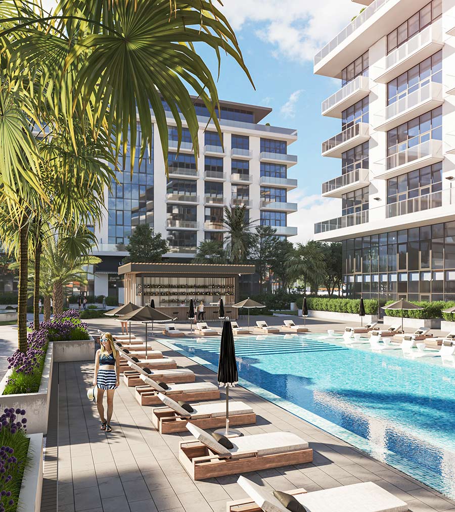 Квартиры и пентхаусы в резиденции Lighthouse имеют высокие потолки и панорамные окна. На территории комплекса расположен бассейн площадью 52 м² с мини-баром и зонами для отдыха у воды. Для гостей бесплатный вход в пляжный клуб.