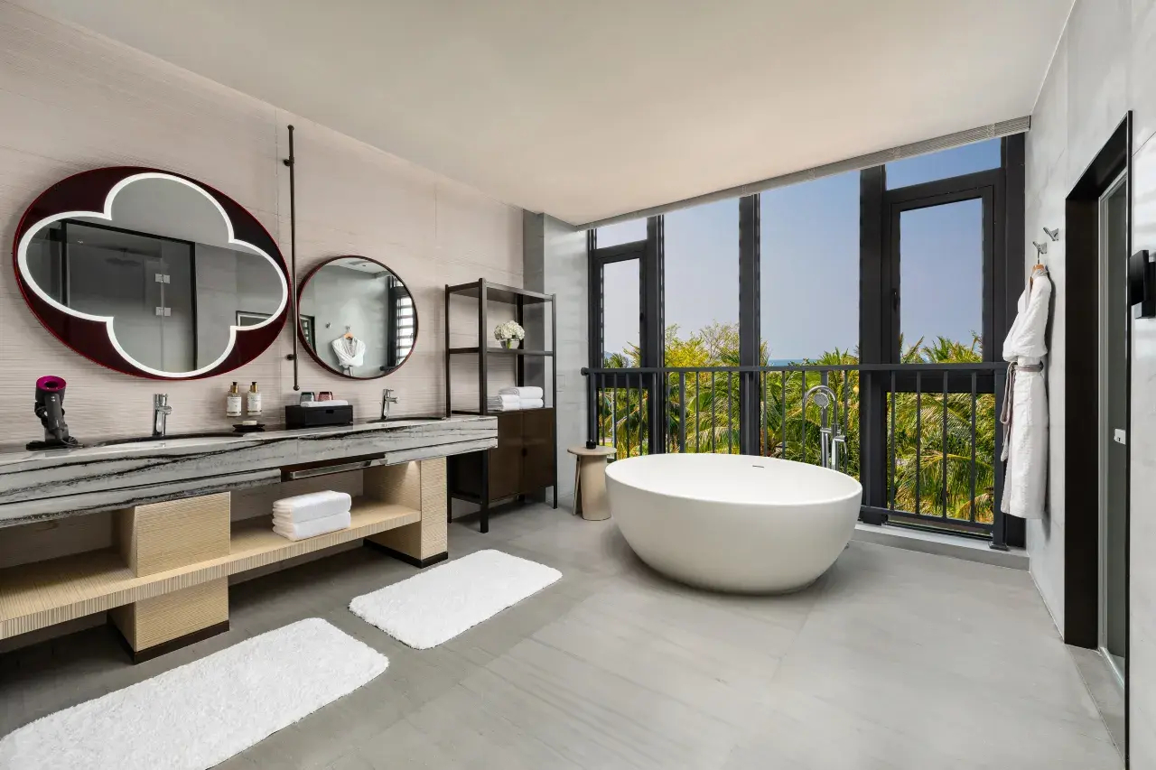 В номере: Wi-Fi, кондиционер, сейф, шкаф, телевизор со спутниковыми каналами, гладильные принадлежности, ванна и душ, фен, брендовые туалетно-косметические принадлежности, халат, тапочки, «вьетнамки» для пляжа, телефон, приветственная тарелка с фруктами, бесплатный пополняемый мини-бар и бутилированная вода, электрочайник, набор для приготовления элитного чая (листовой китайский чай, чайный сервиз), зонт, сушилка для одежды (на балконе), ванна-джакузи (в некоторых номерах/сьютах), ежедневная уборка.