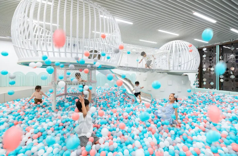 2-8 этаж, семейный номер с дизайном в «мультяшном» стиле с угловым балконом и панорамными окнами, кровать king size, игровая зона с вигвамом, гостевая зона с большим диваном, ванная комната с душевой кабиной, туалетный столик, меблированный балкон с ванной, вид на океан/ на озеро;
