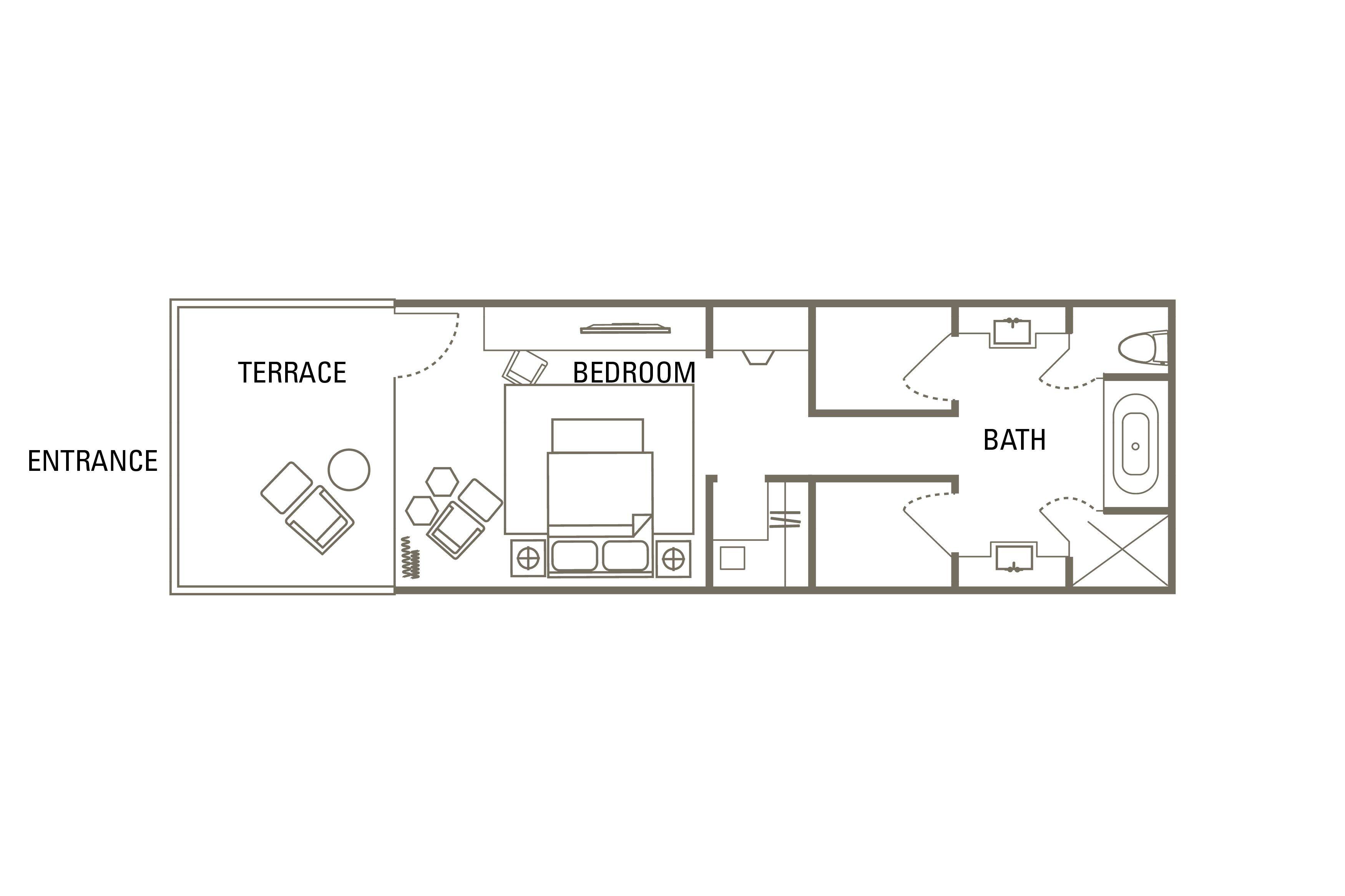 - 56 номеров Terrace Room (60 м², макс. 3+1).