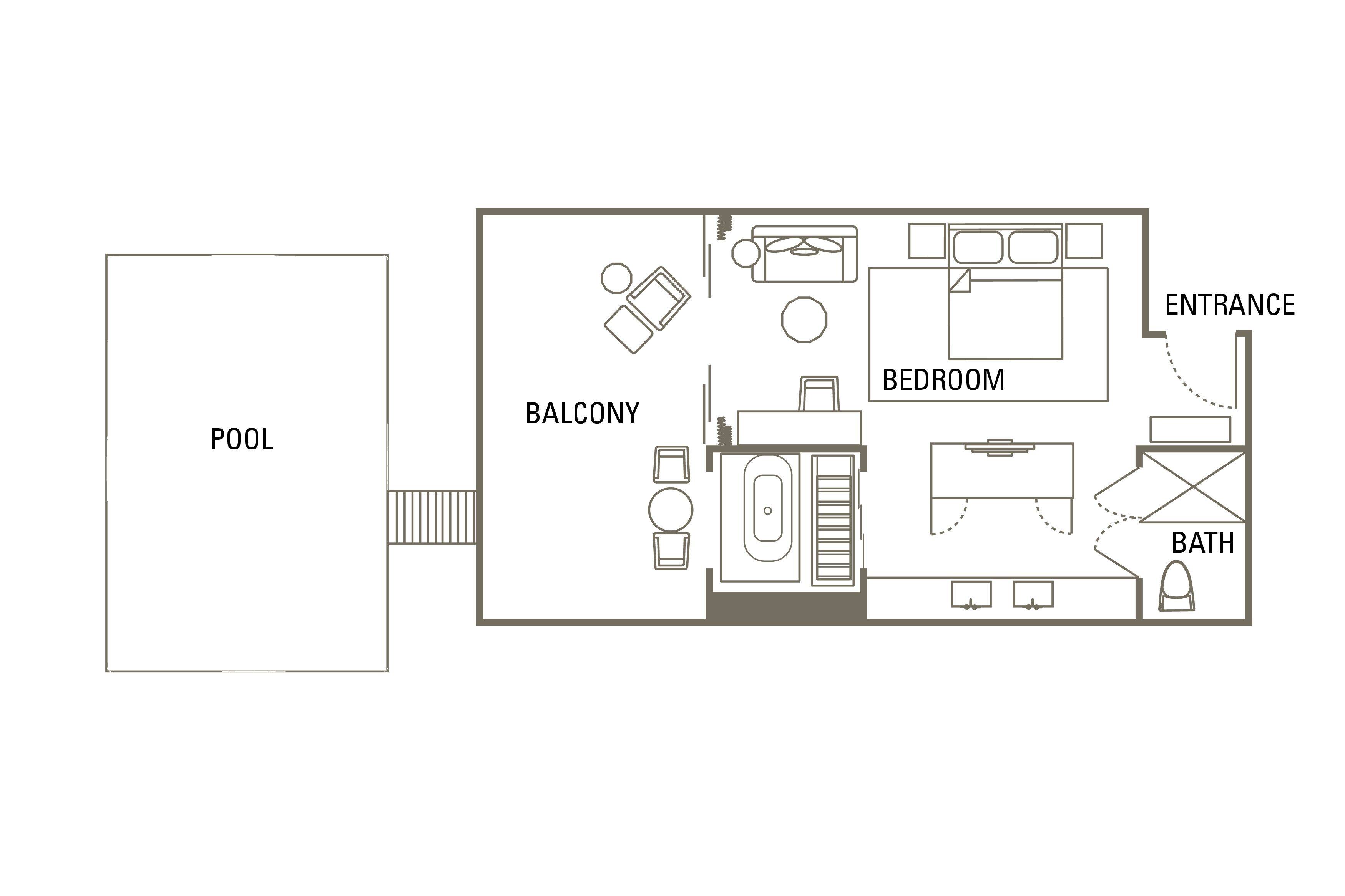 - 10 номеров Pool Pavilion King (52 м², макс. 2+1).