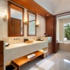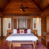 Вилла-дуплекс на берегу, «французские» окна от пола до потолка: на 2 этаже – главная спальня с двуспальной кроватью king size и гостевой зоной, собственная ванная комната с джакузи у окна и тропическим душем; на 1 этаже – спальня с 2-мя односпальными кроватями, ванная комната с ванной и душевой кабиной, гостиная с обеденной зона на 4 персоны; выход на меблированную террасу-патио (171м²), тропический душ на открытом воздухе, сад с обеденным столом, пейзажный бассейн, беседка-газебо, вид на океан; есть смежные виллы; эксклюзивные привилегии*; план номера;