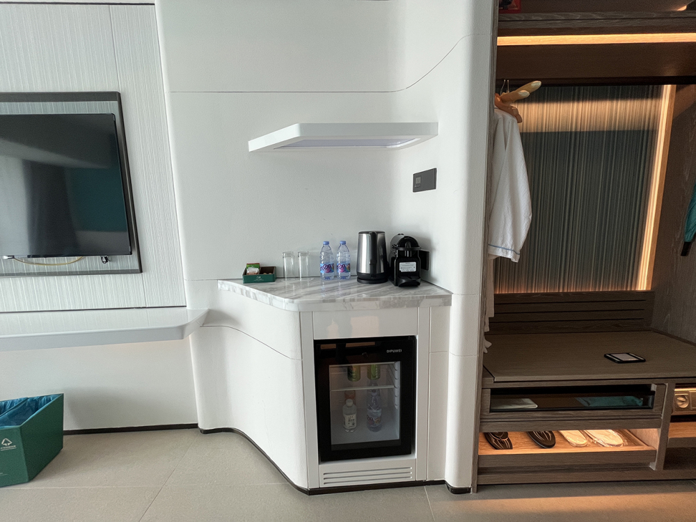 В номере: Wi-Fi, кондиционер, сейф, телевизор со спутниковыми каналами (есть на русском языке), гладильные принадлежности, фен, туалетно-косметические принадлежности, халат, тапочки, «вьетнамки» для пляжа, телефон, приветственные фрукты/сладости, пополняемый мини-бар (платно), бутилированная вода (бесплатно), электрочайник, набор для приготовления чая/кофе, кофемашина (в сьютах), зонт, на балконе: сушилка для одежды, стол и кресла; ежедневная уборка.