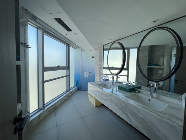 7 этаж, люкс c 2-мя спальнями: в каждой двуспальная кровать (ширина 1,8 м), отдельная гостиная с обеденной зоной, отдельная ванная комната с душевой кабиной, балкон-терраса с ванной на свежем воздухе, шезлонгами и зонтом, вид на море;