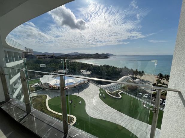 8 этаж, двуспальная кровать queen size (ширина 1,8 м) и односпальная кровать (ширина 1,1 м), ванная комната с душевой кабиной, балкон, панорамный вид на море с высокого этажа;