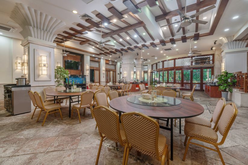 Sanya Huayuan Hot Spring Seaview Resort — курортный отель группы Green Development Group, расположенный в престижной части 22-километрового «Коридора мечты с кокосами» в бухте Санья, всего в 3 минутах ходьбы от пляжа. Отель состоит из основного 5-ти этажного здания и трёх вилл.