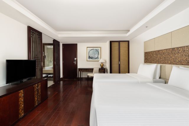 На 1 – 3 этажах, двуспальная кровать king-size или 2 односпальные кровати, дополнительные кровати не ставятся, ванная комната с душем, вид на бассейн/город/сад;