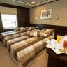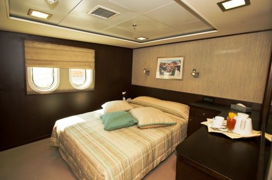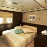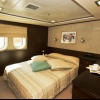 Всего на яхте 25 кают. 9 кают Cat. C – одна кровать King Size, и Cat. B – 2 кровати или одна кровать King Size, расположены на главной палубе, 16 кают Cat. A 2 кровати или одна кровать King Size и Cat. P 2 кровати или одна кровать King Size, расположены на верхней палубе. Размер кают – 12,5 кв. м. Во всех каютах: окна, душ, телевизор, DVD плеер, мини холодильник, фен, кондиционер, сейф.