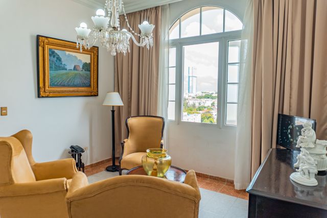 Отель Roc Presidente с потрясающим видом на океан расположен в 5 км от исторического центра Гаваны и состоит из одного 10-этажного здания.