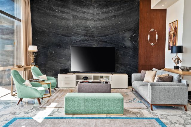 В отеле: набор для приготовления чая/кофе, банные принадлежности, мини-бар, кондиционер, фен, телевизор, Wi-Fi, сейф, кофемашина, халат, тапочки.