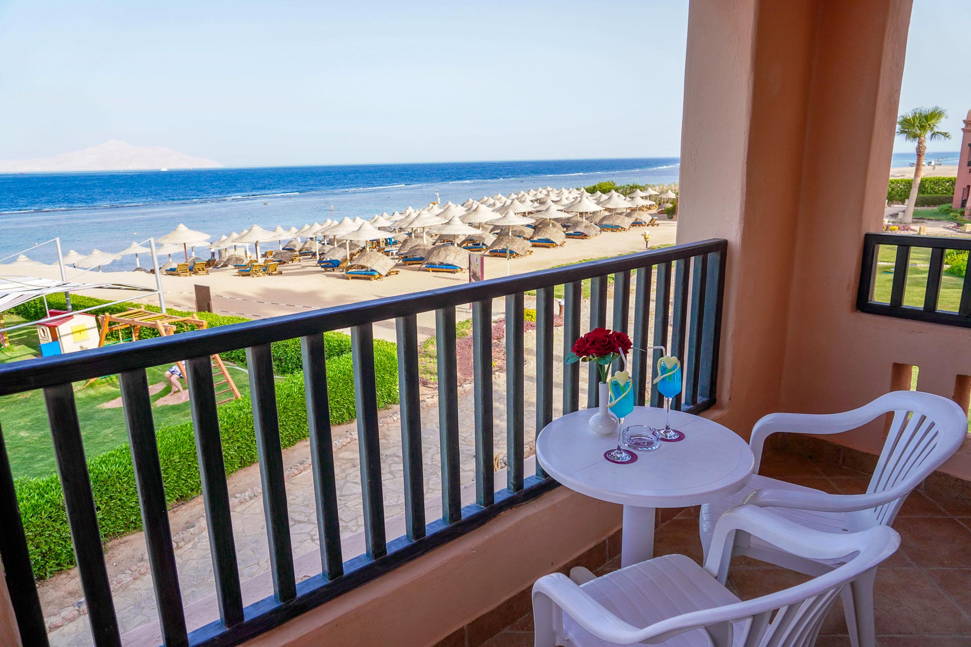 Гостям предлагаются стандартные комфортабельные номера с балконами, расположенные в основном здании и двухэтажных корпусах. Номера различаются по видам — на бассейн, на море или с прямым видом на пляж и море.