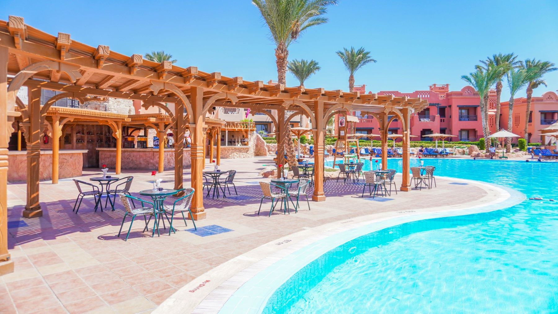 На территории отеля — оборудованный пляж, два открытых бассейна (взрослый и детский), террасы для загара, три ресторана, три бара, детский клуб, анимационные программы, амфитеатр, конференц-зал и площадки для мероприятий.