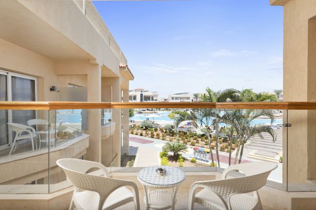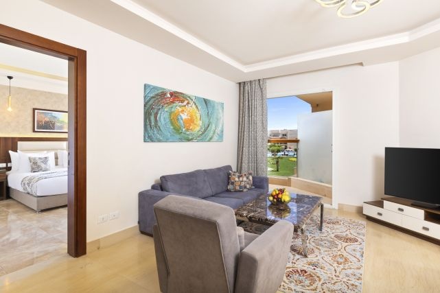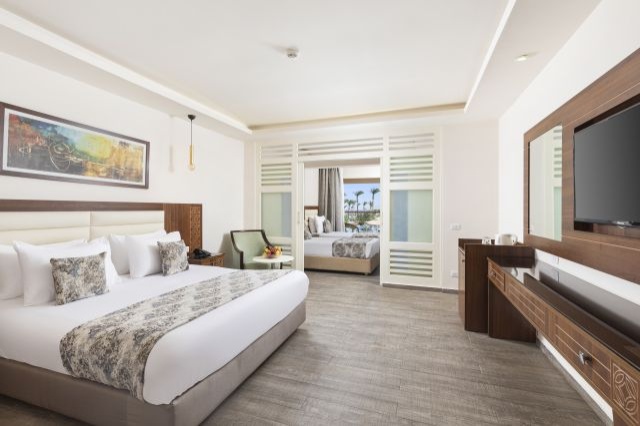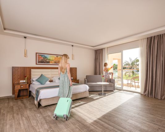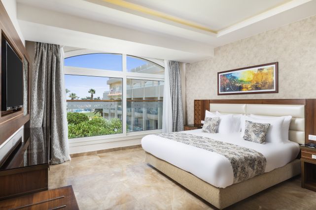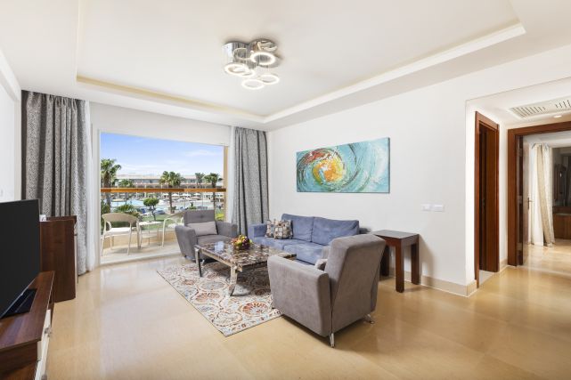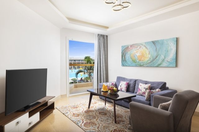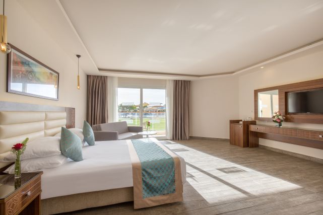 • 16 номеров Junior Suite Pool View (65 м², макс. 3+1 или 2+2).