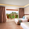 2 спальные зоны: двуспальная кровать и 2 односпальные кровати, между ними раздвижная дверь, ванная комната с душем, балкон/терраса, вид на сад/бассейн/море;