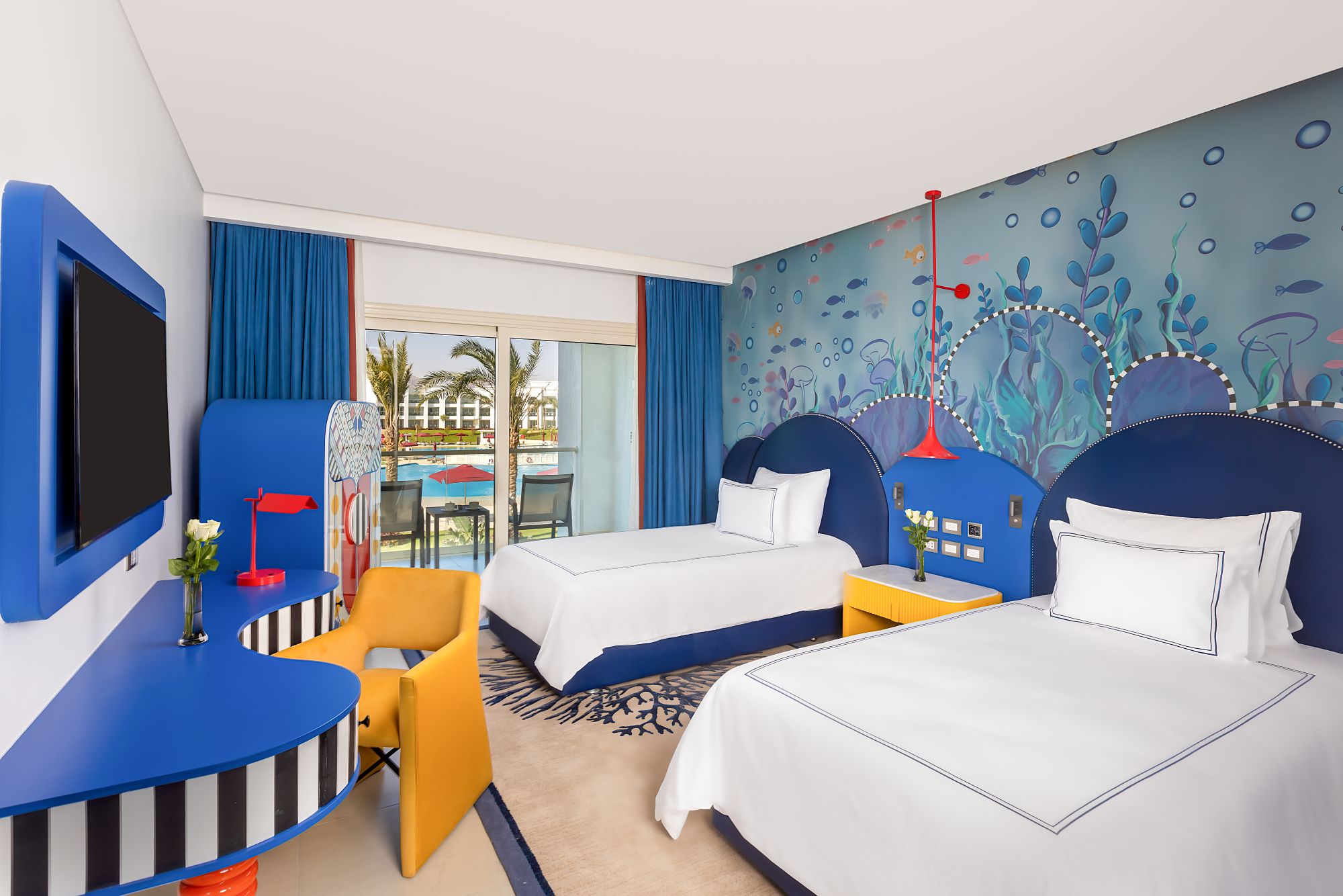 Семейный номер с 2-мя спальнями, каждая с собственной дверью: спальня с двуспальной кроватью и зоной отдыха, спальня с 2-мя односпальными кроватями, отдельная ванная комната с душевой кабиной, меблированный балкон/ терраса, вид на сад/ бассейн;
