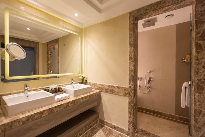 В номере: Wi-Fi, кондиционер с индивидуальным управлением/ регулируемая отопительная система, сейф, спутниковое телевидение (есть канал на русском языке, канал с мультфильмами), телефон, туалетно-косметические принадлежности, косметическое зеркало, фен, весы, халат и тапочки, электрочайник, кофемашина (в сьютах), бутилированная вода, набор для приготовления чая и кофе, мини-бар (пополняется ежедневно, бесплатно для «Всё включено Ultra»).