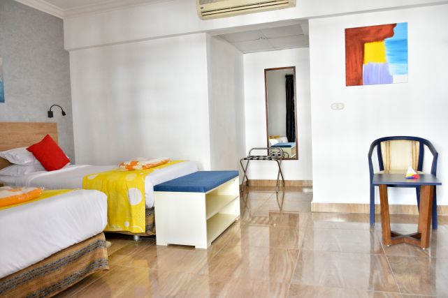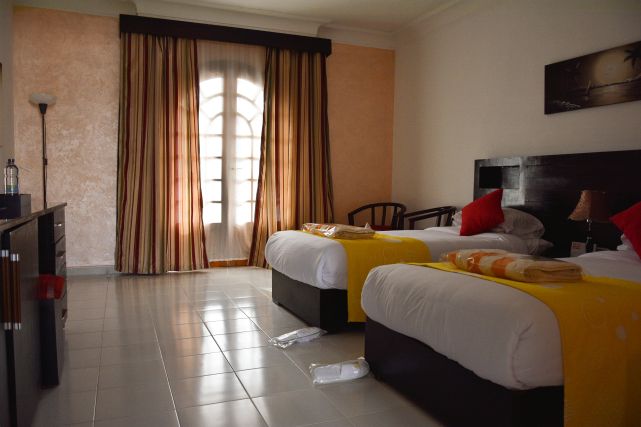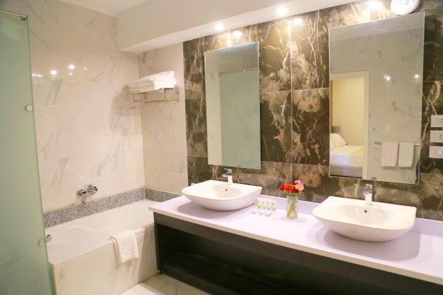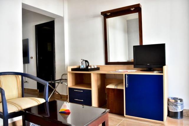 В номерах: сейф, IP телефон, мини-бар (ежедневно пополняется одной бутылкой минеральной воды), телевизор со спутниковыми каналами, фен, кондиционер.