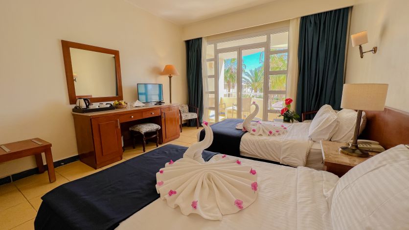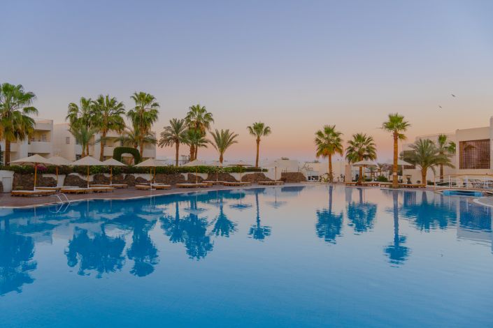 Sharm Reef Hotel расположен в центре Шарм-эль-Шейха, на плато Um El Seed, с видом на торговую и коммерческую зону города. Отель находится в 18 км от международного аэропорта и в 8 км от бухты Наама. Частный пляж, в 10 минутах ходьбы или 5 минутах на шаттле, расположен на Pinky Wall, красивой охраняемой территории с великолепным видом на Красное море и горы.