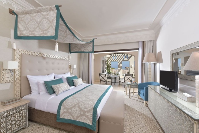 Спальня с двуспальной кроватью queen-size, гостиная зона, балкон, прямой вид на море;