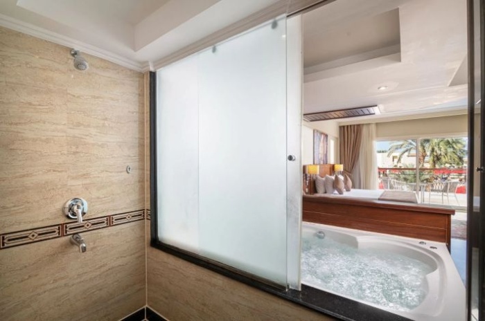 На территории — 520 просторных номеров и сьютов, пять ресторанов, бары у бассейнов и на пляже, а также круглосуточное обслуживание номеров.