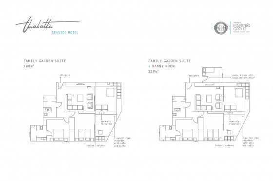 Всего в отеле 50 номеров. Во всех номерах: кондиционер, ЖК-телевизор, телефон, сейф, мини бар, косметические принадлежности. Garden View - номер с террасой, 45 кв.м. Family Garden Suite - 100 кв.м., 2 спальни, гостиная, веранда. Есть возможность присоединить к номеру комнату для няни с отдельным входом.(площадь общая всего номера 110 кв.м.) Superior SV - первый этаж, 41 кв.м. Junior Suite SV - второй этаж, номера с балконом, 41-46 кв.м. Executive Suite Forest and Sea View - 2 балкона (один с видом на лес, второй на море), открытого плана номер, 65 кв.м. Thalatta Suite- номер открытого плана, частный бассейн, 65 кв.м. Thalatta Maisonette - 3 спальни, 2 этажа, частный бассейн, 135 кв.м.