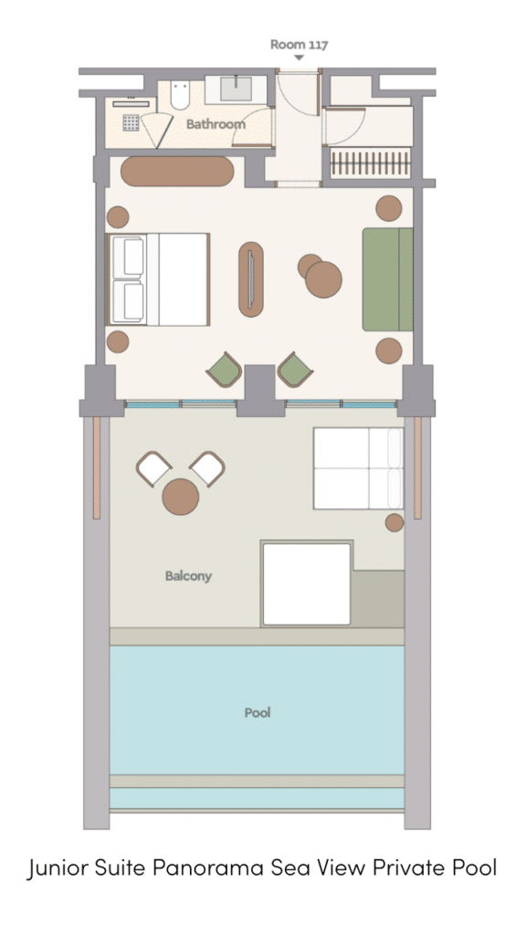 - Junior Suite Private Pool (36 м², макс. 2+1).