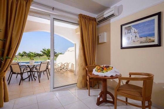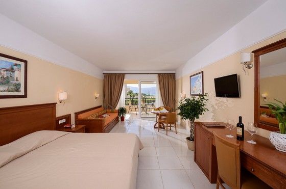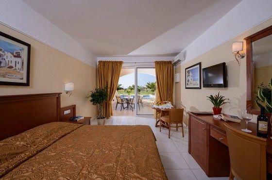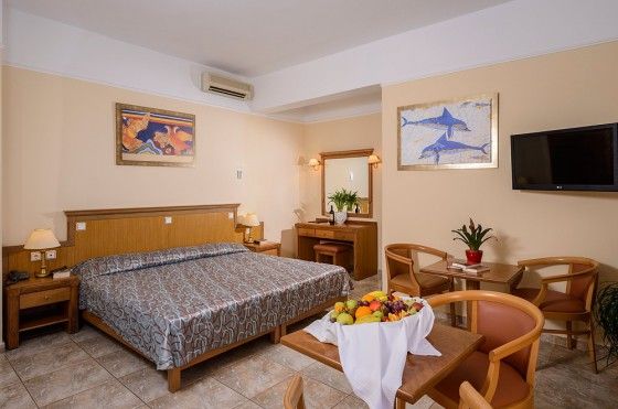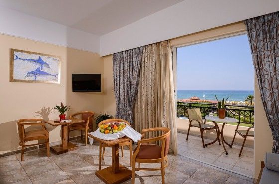 В отеле 120 номеров - двухместные и семейные сюиты с боковым видом на море (в сюитах комната и холл не разделены между собой дверью). В номере: Ванна/душ, туалет, кондиционер, телефон, телевизор, радио, мини-бар, фен, сейф (платно), терраса или балкон.