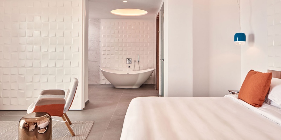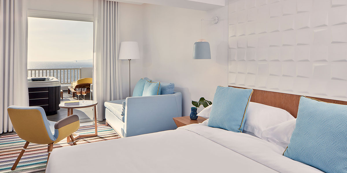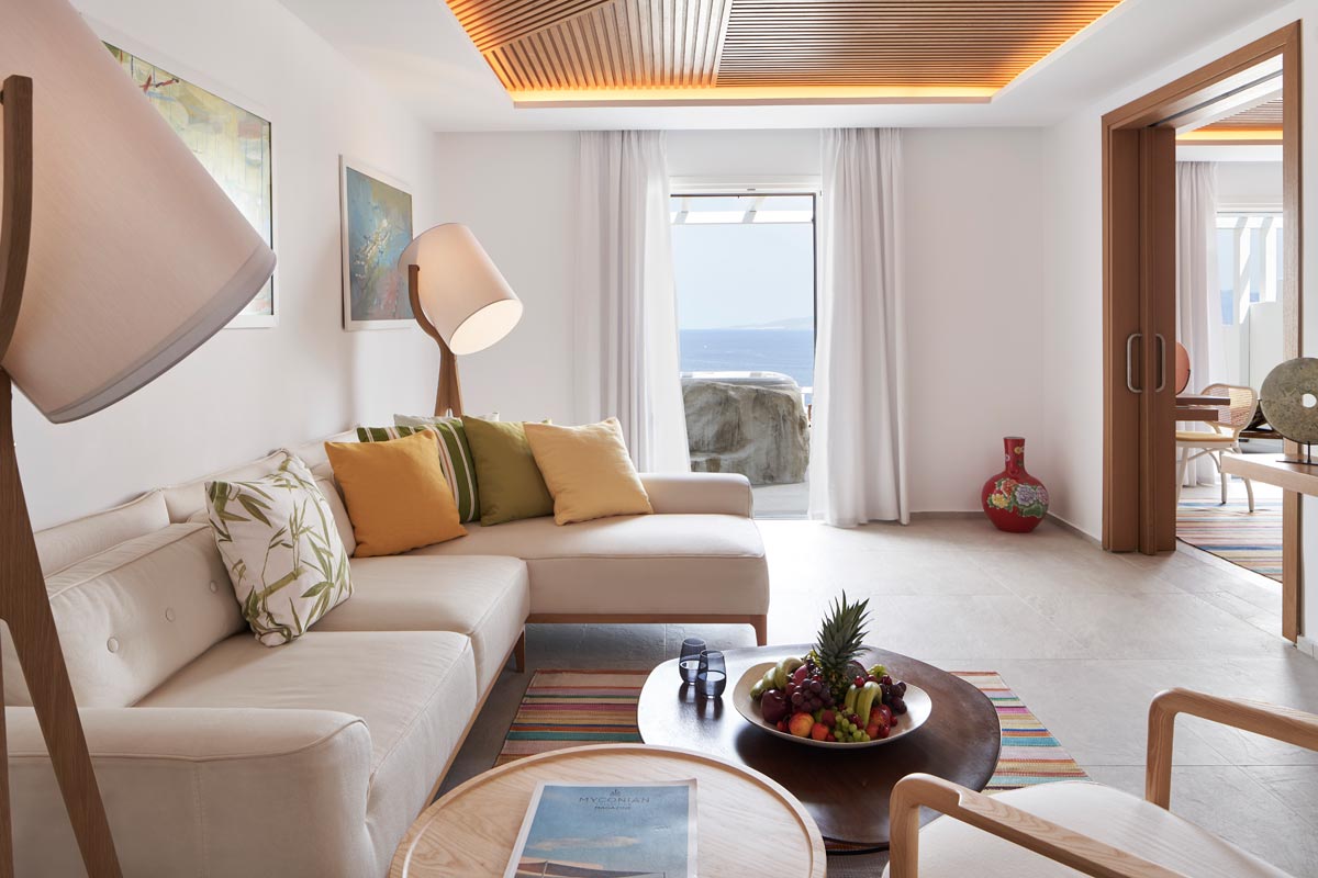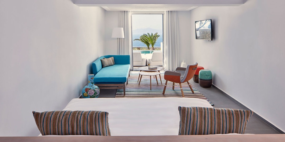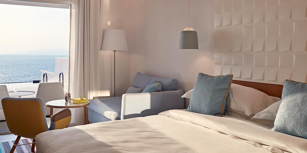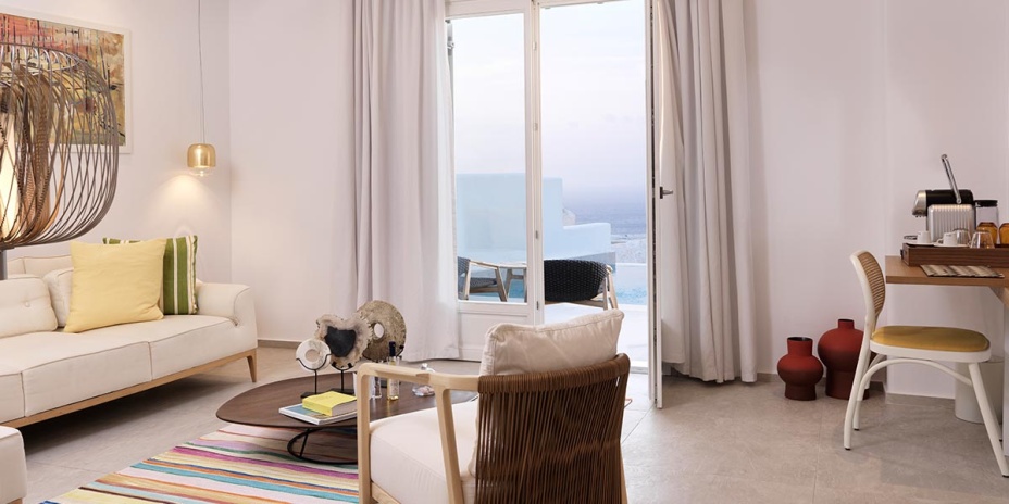 Роскошные номера и люксы с балконами, большими бассейнами или джакузи предлагают уединение и комфорт, контрастируя с яркой атмосферой солнечной террасы и закатами у бара Kitrino. Особое внимание привлекает ресторан Baos с потрясающим панорамным видом на Миконос и море, где высокая кухня раскрывает свою истинную сущность.