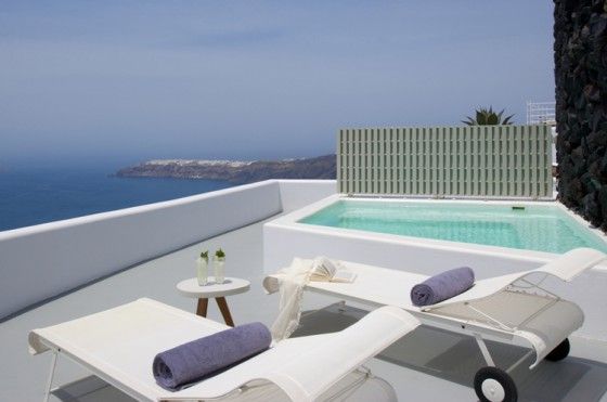 Сьюпериор сюиты предалагают гостям просторные террасы с подогреваемыми джакузи, комфортабельными крестами и двухместными лежаками. Интерьер гостиной отличается мягкостью и воздушностью. Сюит “Кальдера” расположен на самом верхнем уровне, откуда открывается захватывающий вид. Расположенный на среднем уровне отеля сюит “Скарос” предлагает гостям насладиться потрясающими видами на Эгейское море и эффектную скалу Скарос (площадь внутри – 46 кв. м, снаружи – 37 кв. м).