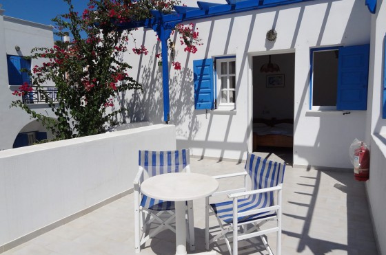 Отель предлагает 46 номеров в кикладском стиле, традиционно украшенными балконами или террасами. В номере: ванна/душ; туалет; умывальник; фен; балкон; кондиционер (центральный); сейф; холодильник; ТВ – спутниковое