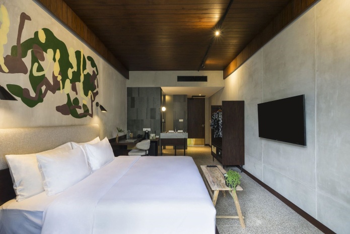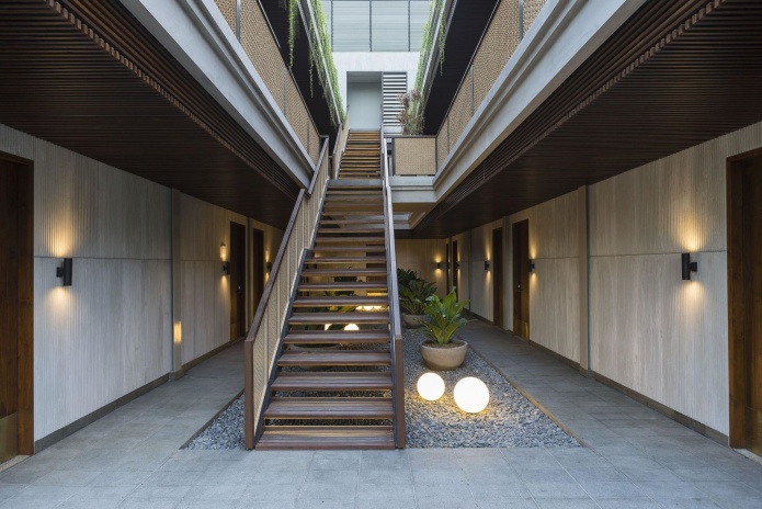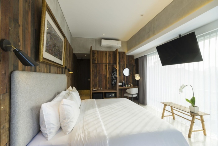 В трёхэтажном здании предусмотрено около двух десятков стильных дизайнерских номеров-студий, сочетающих традиционные балийские элементы и современные удобства. В числе преимуществ — балконы или террасы в каждом номере.