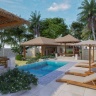 Расположена в тихой части курорта, только для гостей 16+, 2 спальни: двуспальная кровать king-size и 2 односпальные кровати, гардеробная, ванная комната, терраса, частный бассейн и сад, вид на бассейн.
