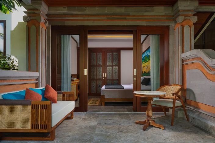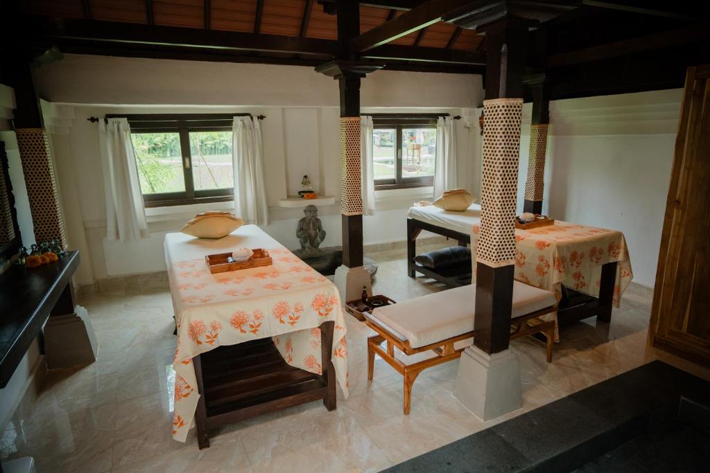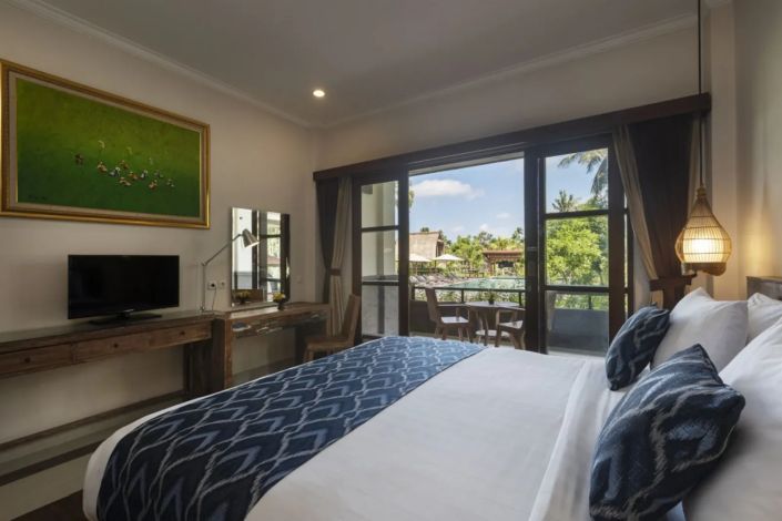 Гости могут отдыхать в садах и у двух бассейнов с видом на реку и зелёные просторы. Курорт предлагает мастер-классы по кулинарии и экскурсии на ремесленные рынки, превращая пребывание в культурный опыт Бали.