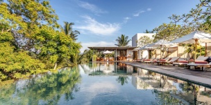 The Grand Bali расположен на курорте Нуса Дуа, неподалеку от отеля расположены многочисленные кафе и рестораны. У отеля есть собственный пляжный клуб, трансфер до него предоставляется бесплатно. На территории отеля открытый бассейн, спа-центр, тренажёрный зал, конференц-залы, ресторан и 3 бара.