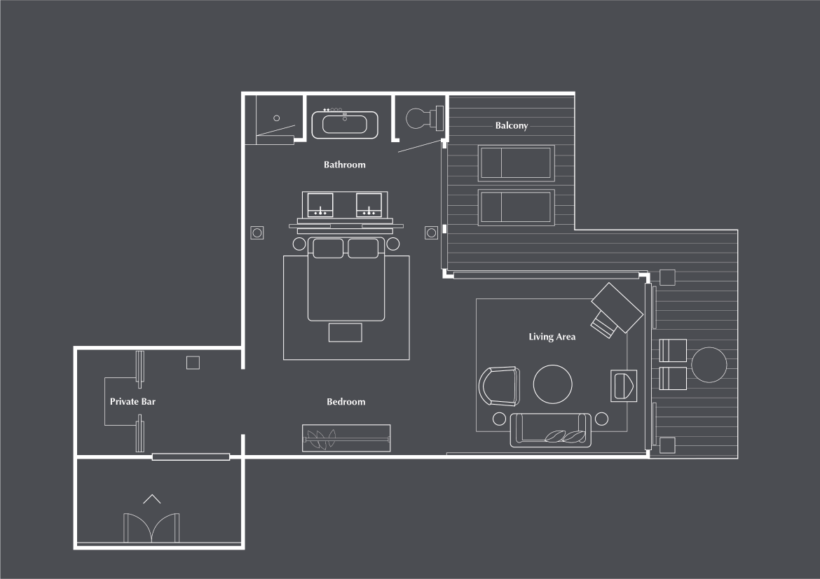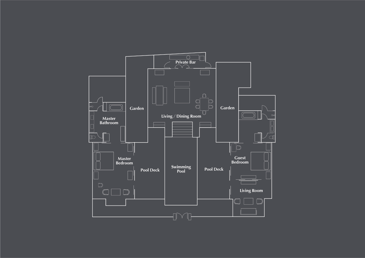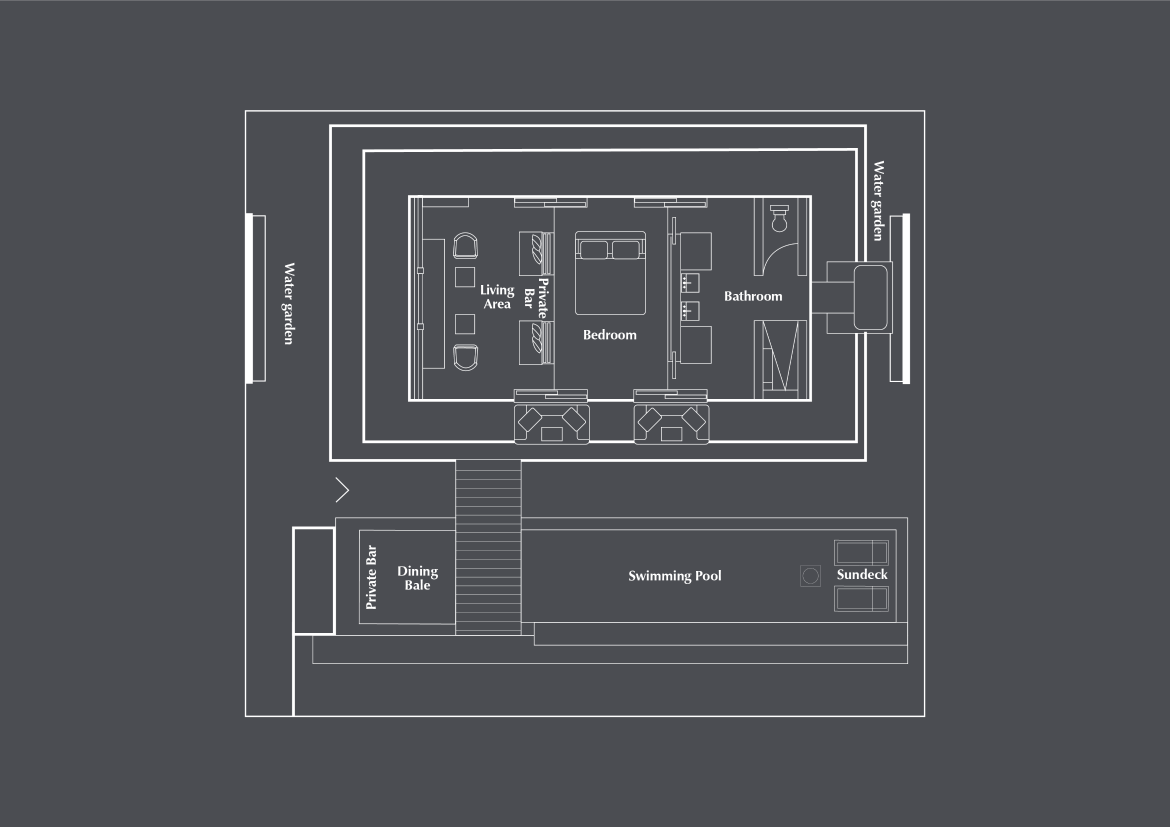 Расположены в уединенном саду, каждая вилла с одной спальней выходит на тенистый бале и частный 10 -ти метровый бассейн, спальня с двуспальной кроватью king-size, гостиная комната, частично открытая ванная комната, услуги дворецкого, преимущества The Club by The Legian Seminyak, см. план номера;