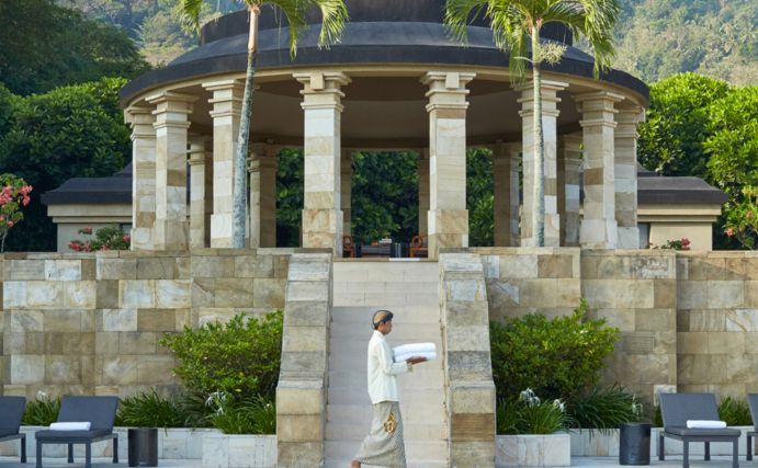 Дизайн и архитектура: Курорт выполнен в традиционном яванском стиле с использованием местных материалов, таких как камень и дерево. Весь комплекс гармонично вписывается в природное окружение, а его дизайн вдохновлён древними индонезийскими храмами.