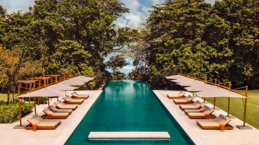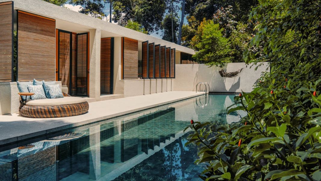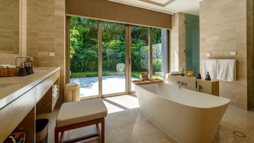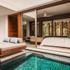 Каждый сьют площадью от 105 м² продуманно спроектирован для гармоничного взаимодействия с природой. Все номера оснащены частным бассейном, открытым внутренним двориком, а также просторной ванной комнатой с ванной и душем.