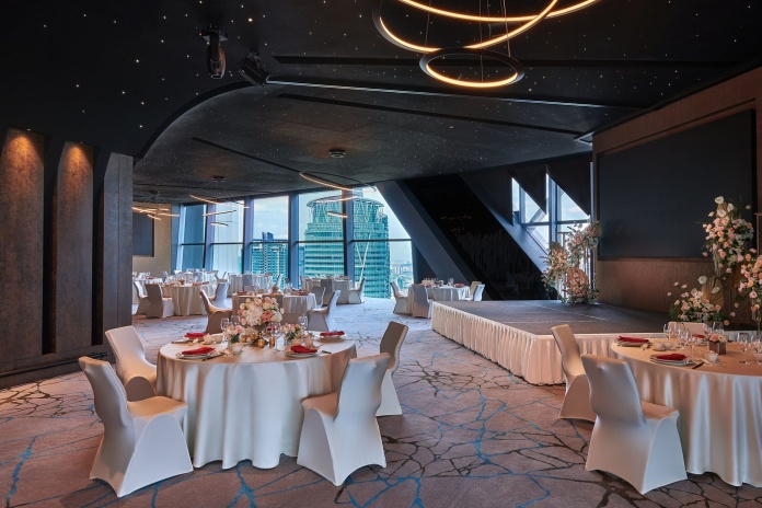 Сьют со спальней с двуспальной кроватью king-size, отдельная гостиная комната с мини-кухней**, ванная комната с ванной и душевой кабиной, окна от пола до потолка, вид на город до горизонта;