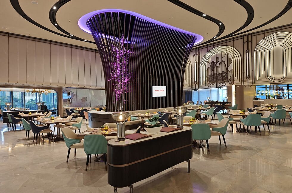 Императорский сьют на 50 этаже: 3 спальни с двуспальной кроватью в каждой, 2 ванные комнаты с ванной и душевой кабиной, 1 ванная комната с душевой кабиной, гардеробная, отдельная гостиная открытой планировки с кухней и столовой (обеденный стол на 6 персон), балкон с просторным частным бассейном (без подогрева), панорамный вид на город; привилегии для проживающих*, план номера;