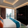 Сьют–апартаменты с 2-мя спальнями на 36-45 этажах: каждая с двуспальной кроватью и собственной ванной комнатой с душем (ванная комната главной спальни с душем и ванной), отдельная гостиная, обеденная зона со столом на 4 персоны и мини-кухня: холодильник, СВЧ-печь, плита, раковина, шкафы для хранения, стиральная и сушильная машины, вид на город; план номера 1 вар., план номера 2 вар., план номера 3 вар;