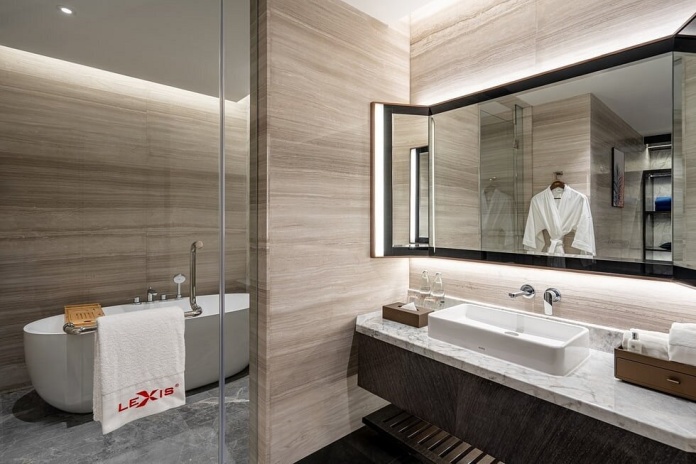 кровати с ортопедическими матрасами, SMART TV, спутниковые каналы, фирменные банные принадлежности (в категории «penthouse suites» от Molton Brown), фен, халаты, тапочки, кофемашины/чайники, бесплатная бутилированная вода, утюг и гладильная доска,