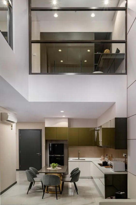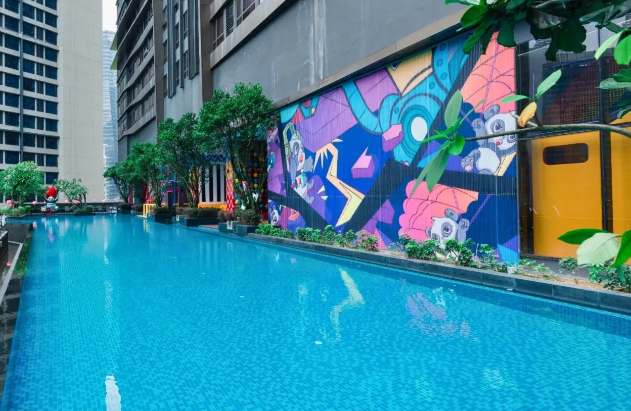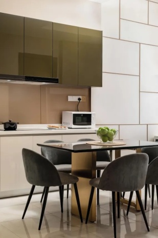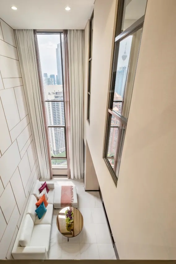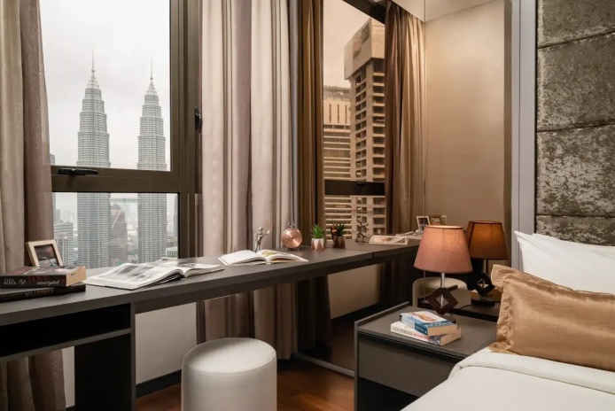 В 48-этажном здании представлены современные сьюты с видом на город, полностью оборудованными кухнями, стиральными машинами и дополнительными спальнями, что делает отель удобным для семей с детьми и длительного проживания.