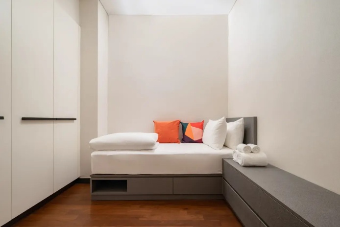 * Мини-спальня с односпальным местом: без окна, футон (ширина 90 см/длина 180 см), кондиционер, шкаф, собственная ванная комната с душем.