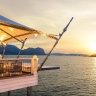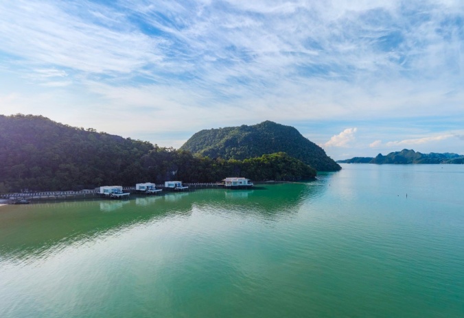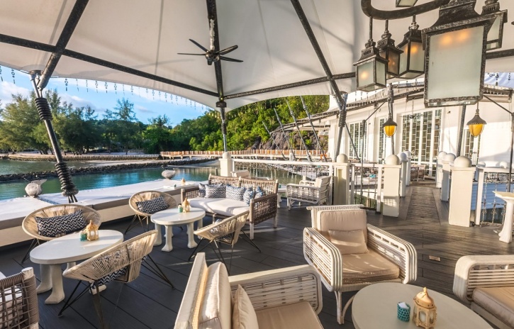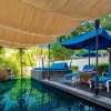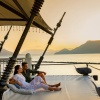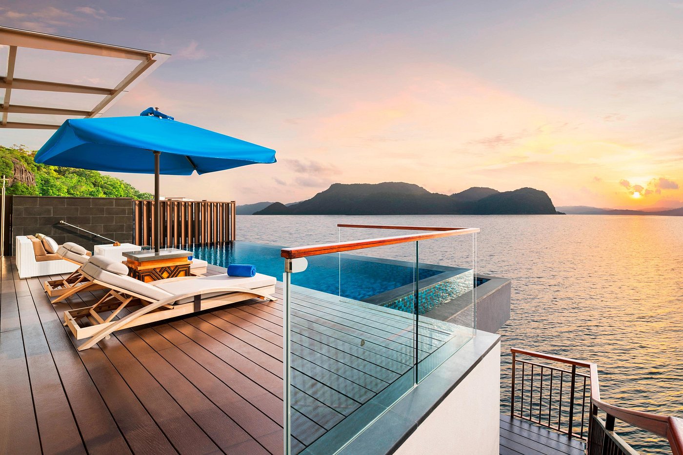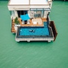 Вилла на сваях над водой (доступ по пирсу): спальня с 1-й двуспальной кроватью, ванная комната с ванной и душевой кабиной, гардеробная, отдельная гостиная с обеденной зоной, мини-кухня с кухонными принадлежностями, просторная меблированная терраса-патио, небольшой частный бассейн, вид на море и на закат;
