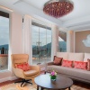 Сьют c 1-й спальней с двуспальной кроватью, раздвижные стеклянные двери в ванную комнату с ванной и душевой кабиной, отдельная гостиная с обеденной зоной, меблированный балкон, частичный вид на море;
