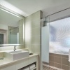 * В номерах ванная комната отделена стеной с окном (матовым или с рольшторой).
